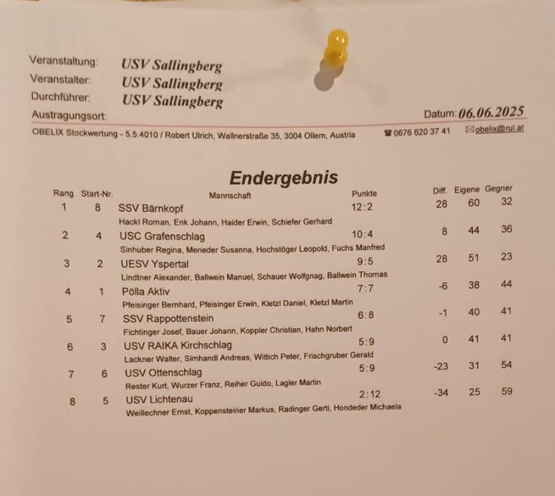 Pokalturnier USV Ottenschlag, 9.5.2025